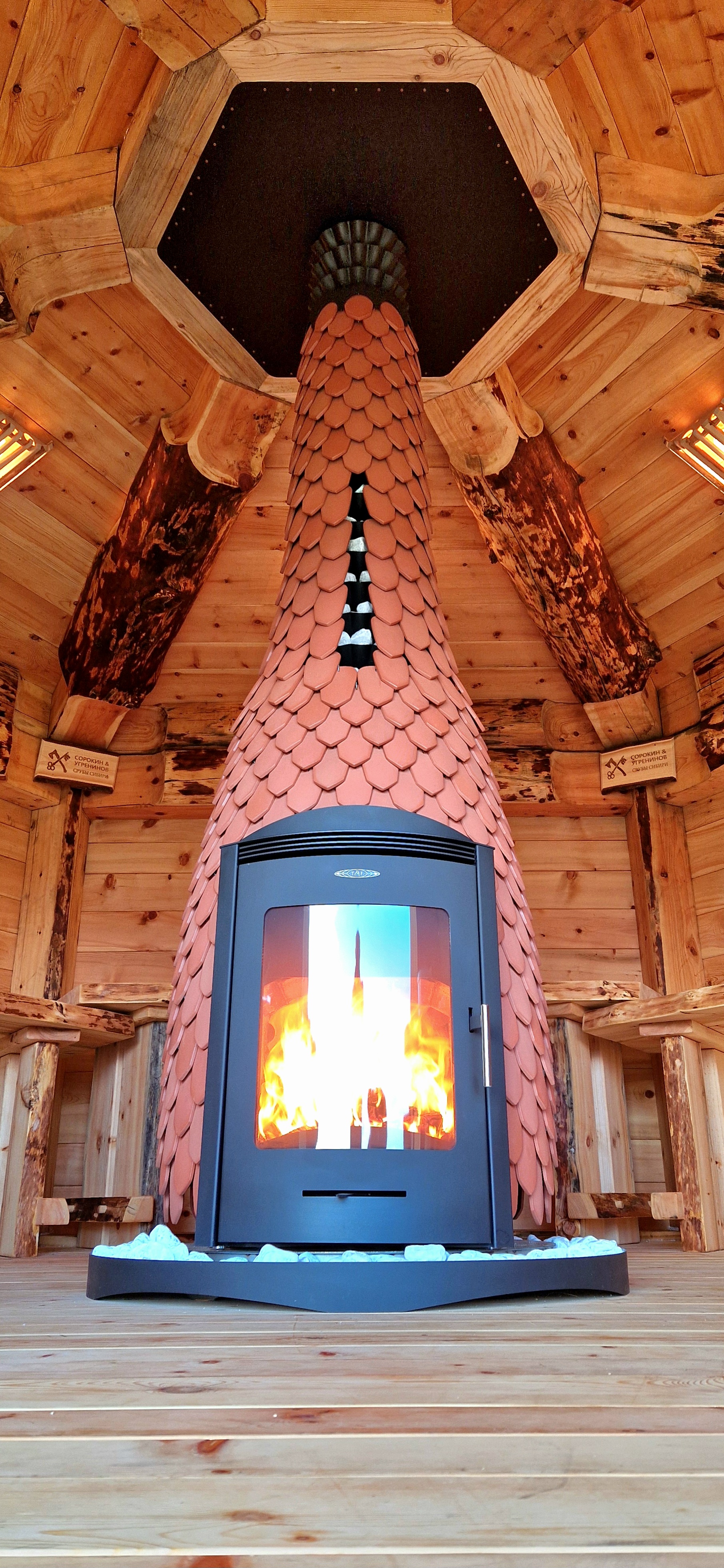 Сочетает в себе функциональность и эстетику, единство технологического и природного начал. У этой печи нет привычных плоских или цилиндрических поверхностей — поверхности декора трёхмерные и плавные.